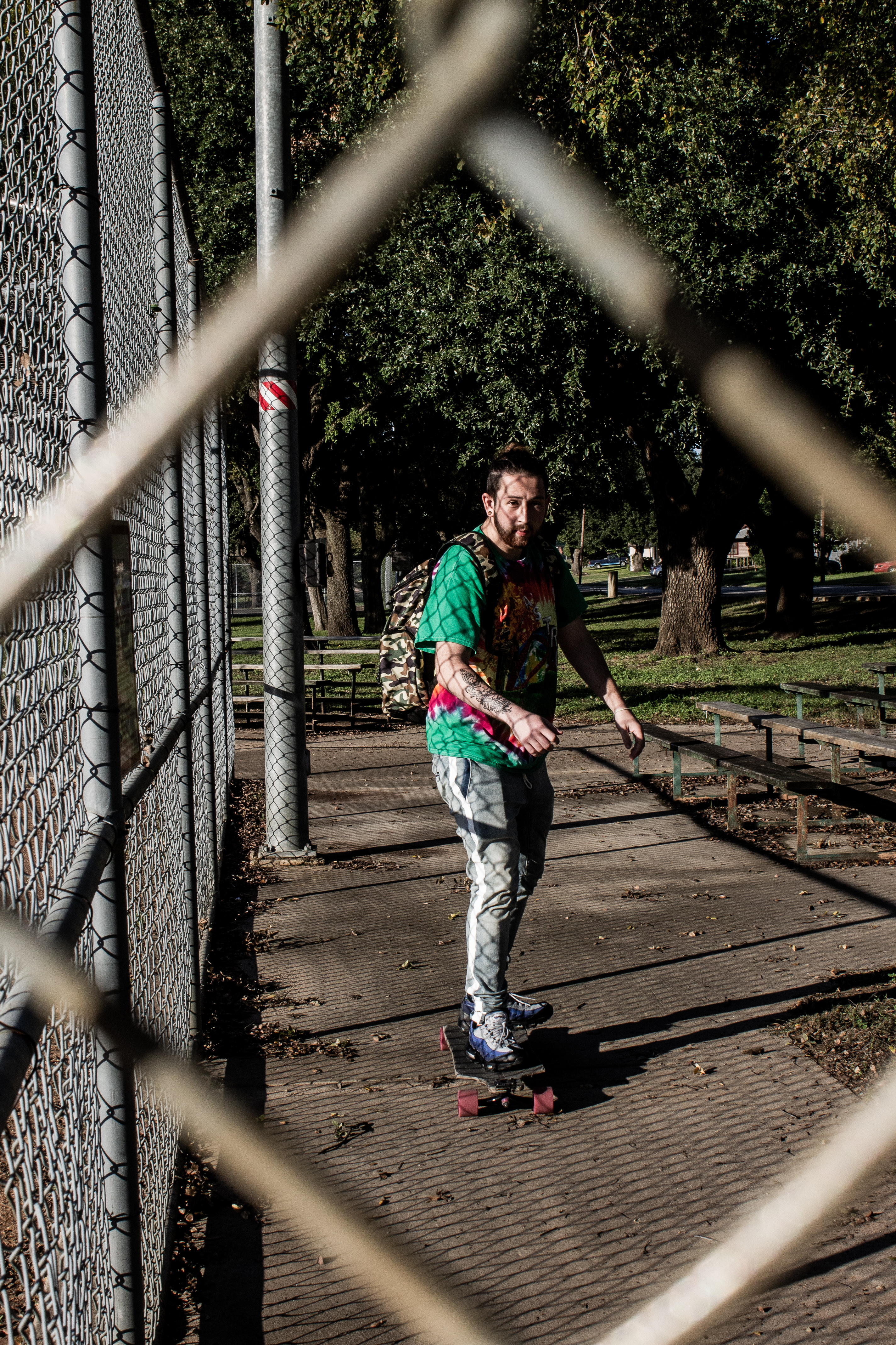 Previous ImageNext Image IMG_7297 John Mohri skateboards at Hamilton Park in Dallas, Friday, October 26 (Isabel Arcellana/SMU)